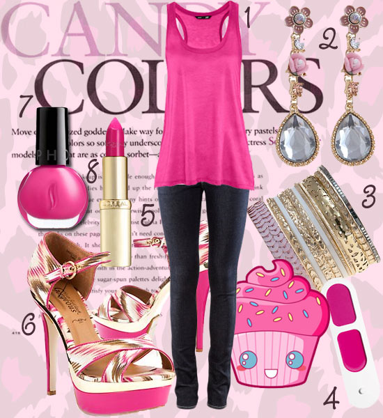 Pour voir la vie en rose, rien de tel qu’un look féminin et printanier rose flashy : top rose et jeans slim brut, des bijoux style vintage roses pâles et des bracelets de type indien, une touche de vernis et de rouge à lèvres roses fuschia…et le journée ne peut être que des meilleures !